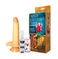 Набор для техник секса (фаллоимитатор реалистик, лубрикант клубничный, очищающий спрей) (201-06-3)