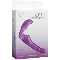 Безремневой страпон из платинум силикона без запаха фиолетового цвета. Короткая часть предназначена для стимуляции точки G, выступ на длинной части - для массажа клитора.